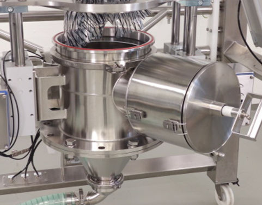Dec has patents pending on the revolutionary SafeDock® system that allows very fast and easy docking operation while maintaining high containment. The system consists of a single ‘dead zone’ free docking tube, closed by automated cover. A side port featuring a continuous liner system is used to remove the inliner. A flexible single-use ring seals the big bag spout. This ring can then be easily removed with the remaining liner through the side port while maintaining containment and isolation. Another advantage of SafeDock® is that it needs no external power source.