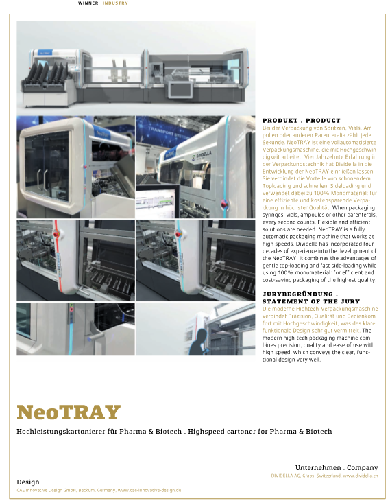 Dividella new generation NeoTRAY cartoner system wins German Design Award