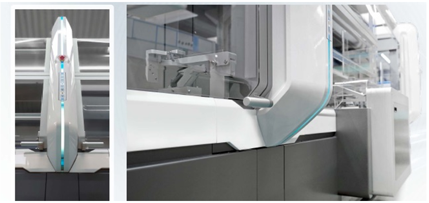 It incorporates an exceptionally clean and uncluttered modular form as well as advanced ergonomic design features such as its distinctive ‘Blue Line’ LED strip next to emergency Stop button that changes to red when errors are detected.