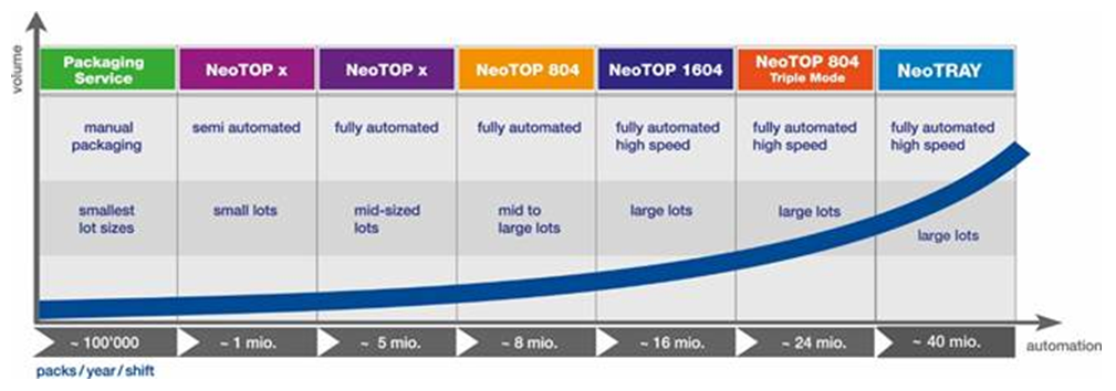 The NeoTRAY features GMP compliant construction and is capable of producing packages that conform to Directive 2011/62/EU