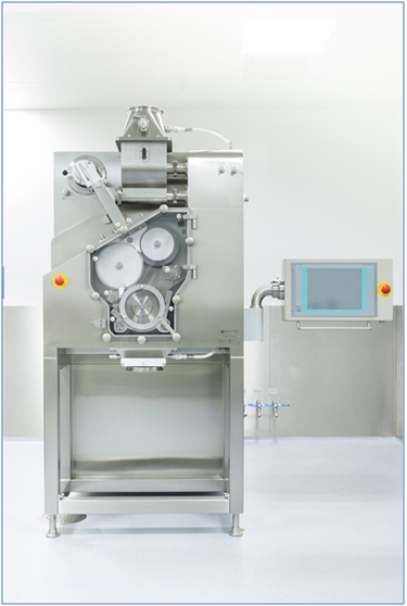 MACRO-PACTOR® incorporates high quality Gerteis engineering and granulator design in a compact package designed and engineered for general pharma use, able to process trial material batches as small as 100g with easy scale-up to full production runs at up to 400 kilograms per hour.