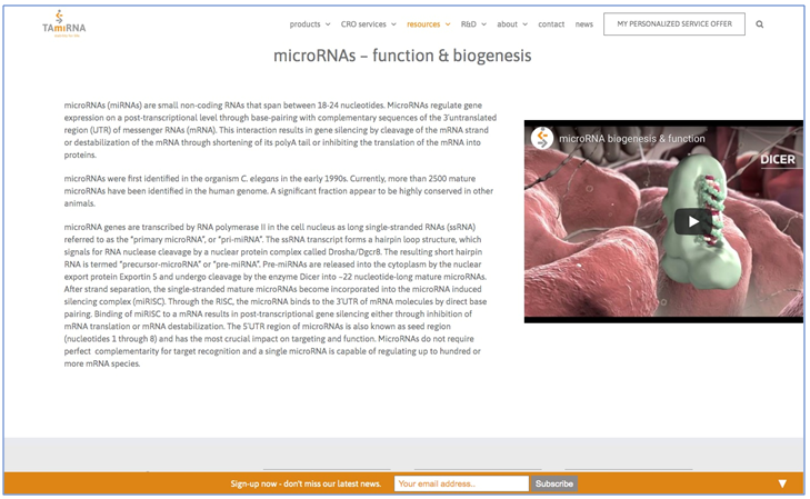 “We have redesigned the site bearing in mind the needs of biotech and pharma companies participating in clinical studies, universities, clinical research groups, potential customers and partners,” commented TAmiRNA head of Scientific Communications, Dr. Elisabeth Semmelrock, who was a key member of the site development team.