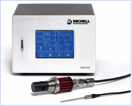 The new S8000 Hygrometer provides a direct measurement of dew point, temperature and pressure. Dew-point measurement is based on the proven, fundamental optical chilled mirror measurement principle, giving long-term drift-free humidity measurement over the entire operating range. The S8000 uses this measurement to offer a range of available measurement units including Part per Million by Volume (ppmV), absolute humidity, relative humidity and Parts per Million by Weight (ppmW). Instrument features include touch screen interface, USB, Ethernet, RS485 or RS232 connectivity and datalogging to SD card or via digital comms