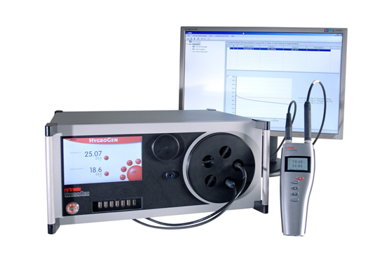 An exceptionally accurate hygrometer, combined with humidity generator, such as Rotronic’s HygroGen2 HGS-2 can also be used as a calibration station for remotely mounted or handheld humidity meters, humidity probes, and humidity sensors.