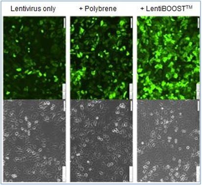 - LentiBOOST® is a highly effective, non-cytotoxic and universally acting (receptor independent) adjuvant that can be applied to a wide range of clinically relevant cell types including CD34+ hematopoietic stem cells (HSCs), primary T cells and NK cells. These unique features make it a promising candidate to improve clinical transduction protocols for ex vivo gene therapies and CAR-T cell therapies. Benefits include up to 90% improvement in lentiviral transduction efficiency, Increased expression levels of therapeutic protein with favorable effect on clinical success rates, positive impact on cell proliferation for CD34+ and T cells, proven lack of cell toxicity and reduced cost of transgenic cell manufacturing.