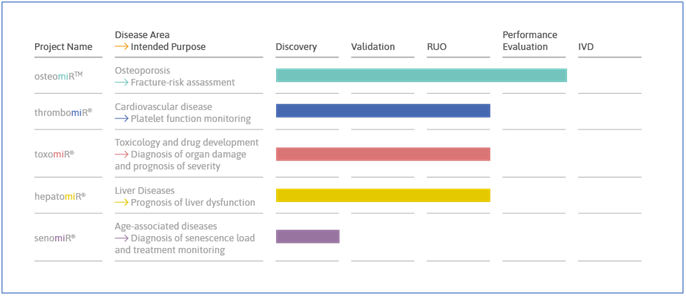 TAmiRNA has a successful track record and impressive pipeline in development of novel miRNA biomarkers for toxicology studies and as predictors of ailments, using these to develop companion diagnostics and monitor disease progression.