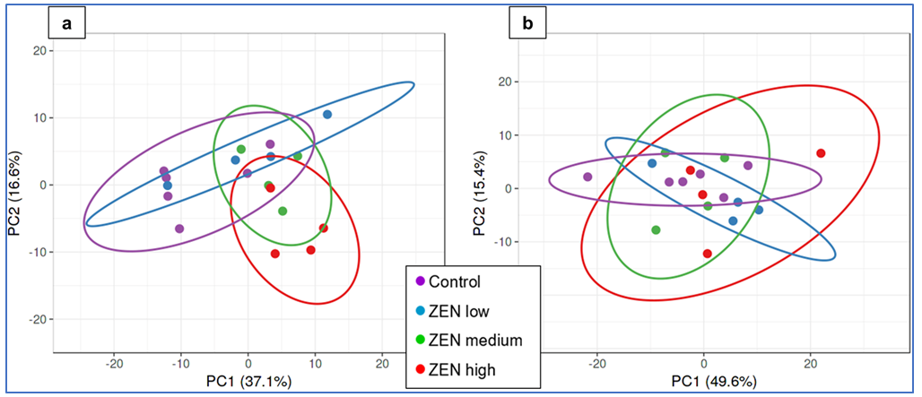 The study involved 24 piglets in groups that received low (0.17 mg/kg), medium (1.46 mg/kg) and high (4.58 mg/kg) levels of ZEN in feed against a control group whose feed was uncontaminated.